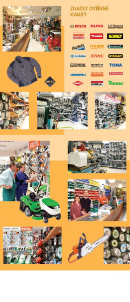Nářadí - nástroje. Prodáváme obráběcí a tvářecí stroje, spojovací materiál, měřicí přístroje, pily, sekačky Stihl, elektromateriál, brusivo, barvy, lazury, tmely, dílenský nábytek. Nabízíme značky Narex, Protool, Makita, DeWalt, Metabo, Bosch.